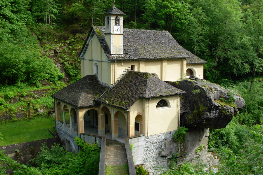 Può darsi però che abbia avuto una parte importante anche l'attigua presenza dell'enorme masso che quasi sollevato da terra, in quanto appoggia solo su una piccolissima base baricentrica, suscita ancora oggi un alone di fascino e di misteriosità. Da dove è venuto? Quando? E perché fermarsi proprio in quella strana posizione, in bilico fra la cappelletta che sfiora per pochi decimetri e il torrente Anza (e dopo la costruzione del Santuario, in bilico anche fra i due lati dello stesso fabbricato che lo circondano, incorporando la stessa edicola originaria)?