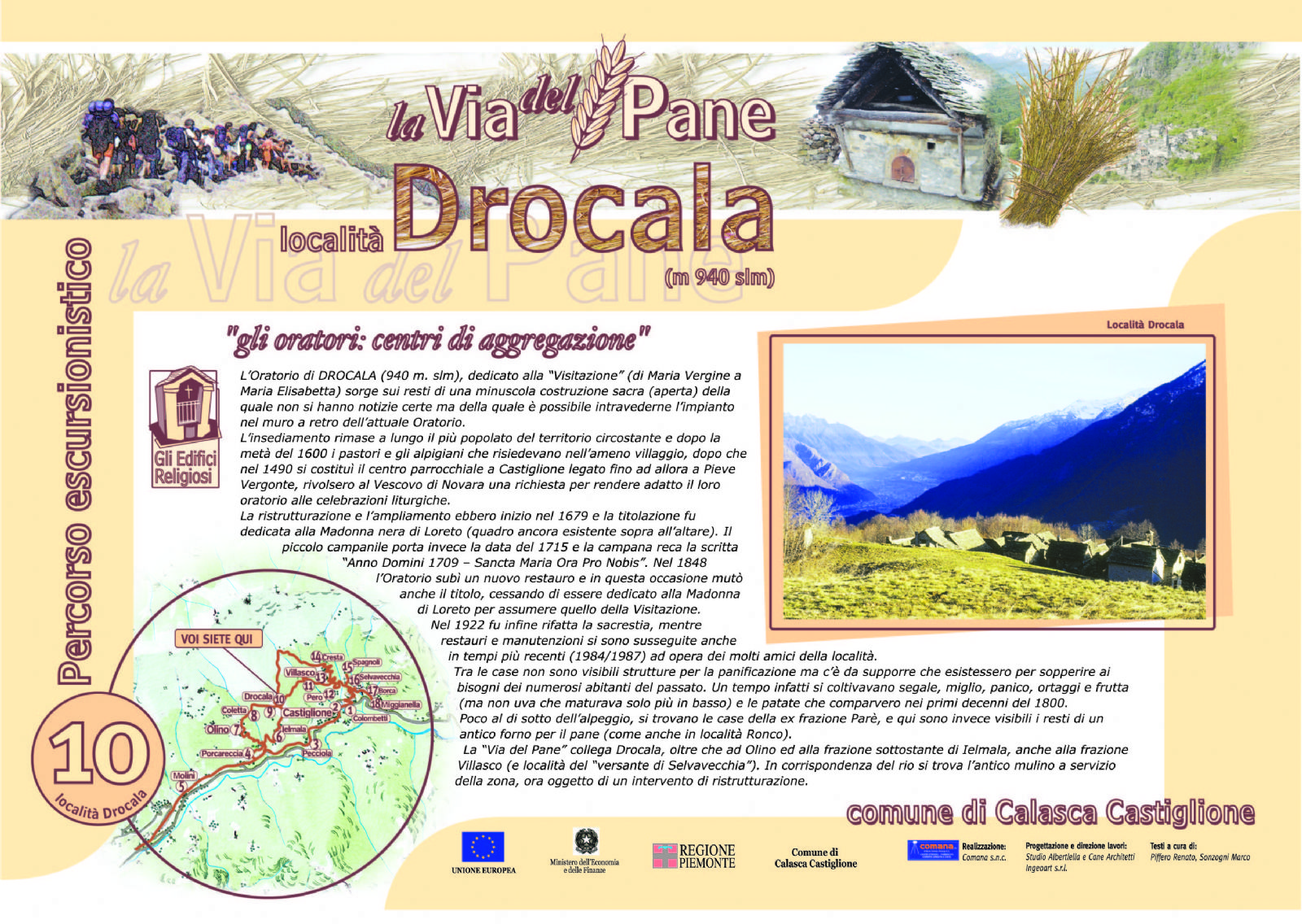 L'Oratorio di DROCALA (940 rn. slm), dedicato alla "Visitazione" (di Maria Vergine a Maria Elisabetta) sorge sui resti di una minuscola costruzione sacra (aperta) della quale non si hanno notizie certe ma della quale è possibile intra vederne l'impianto nel muro a retro dell'attuale Oratorio.